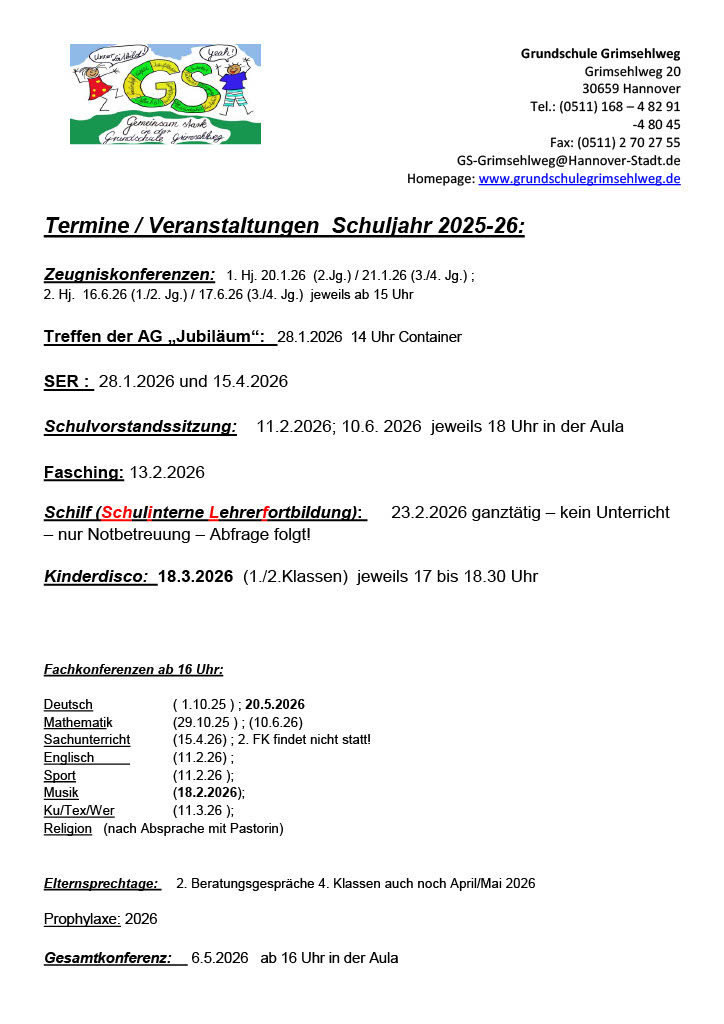 Alle Veranstaltungen, Ferien und weiteren Termine finden Sie hier auf einen Blick.